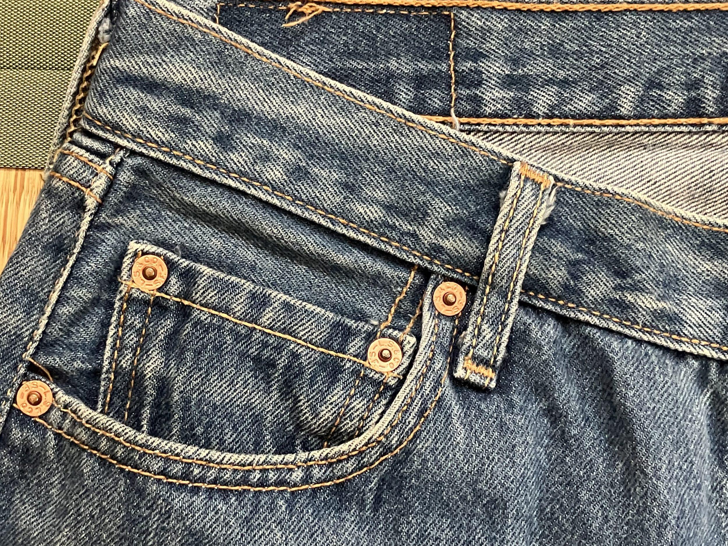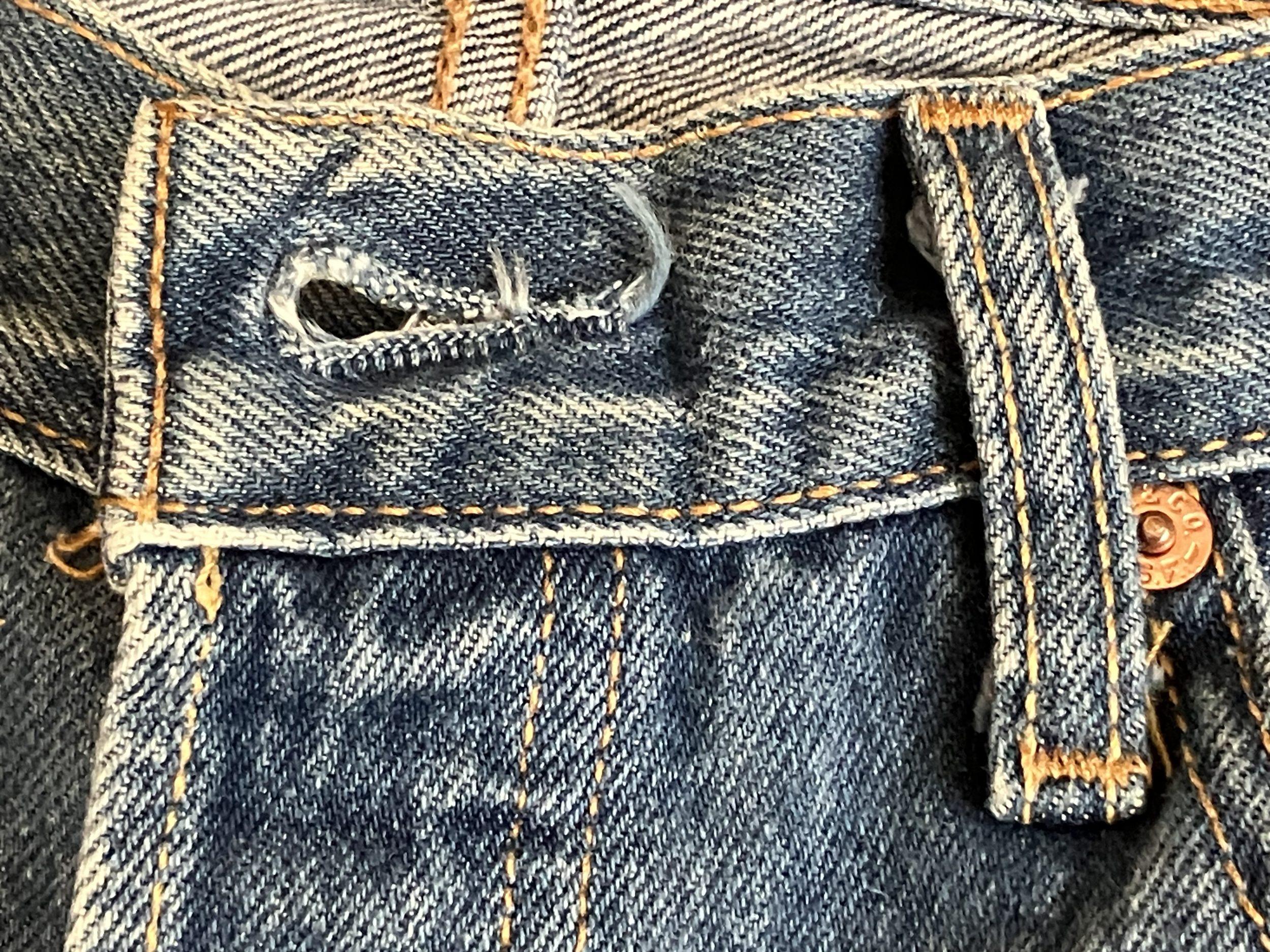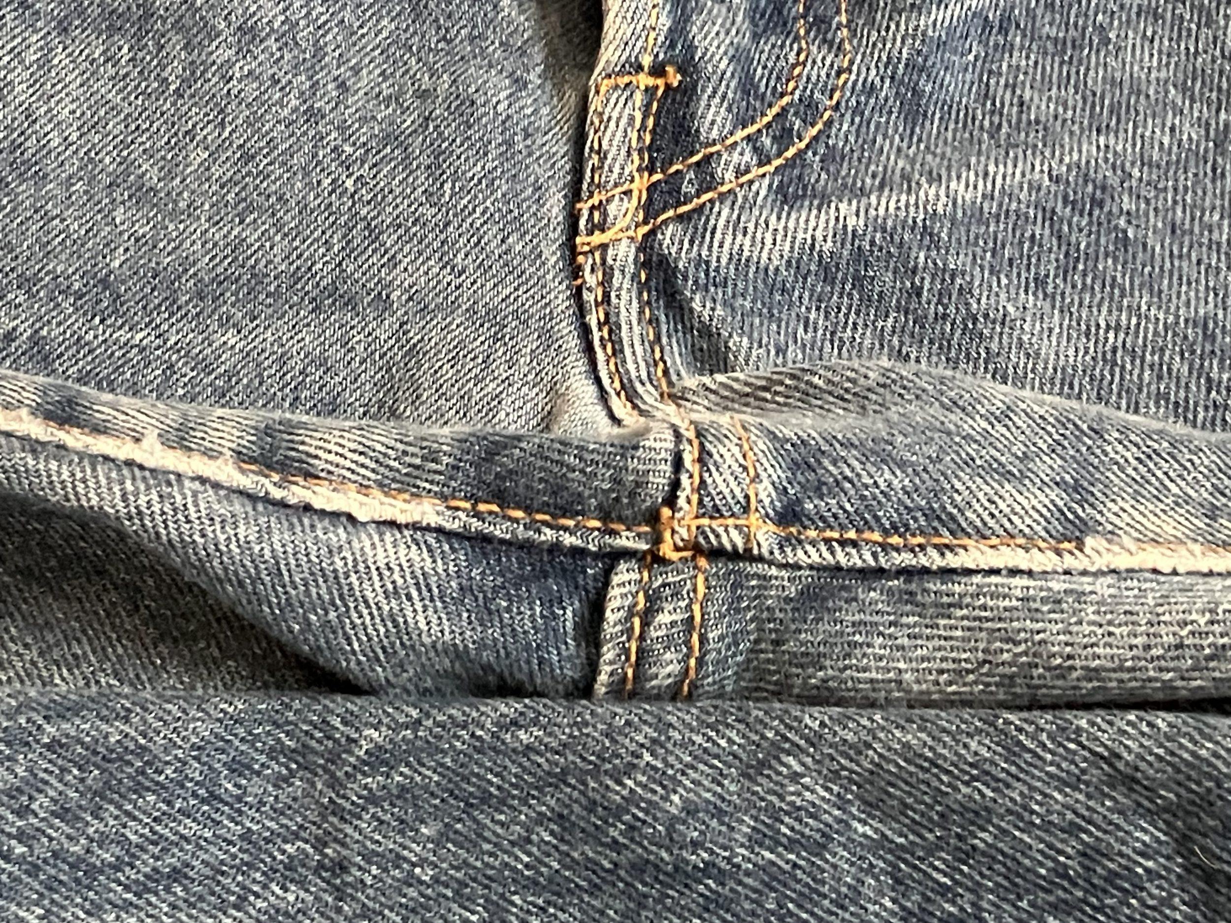 ⑹ベルトループの糸、ウオッチポケットの上辺の糸は黄色
